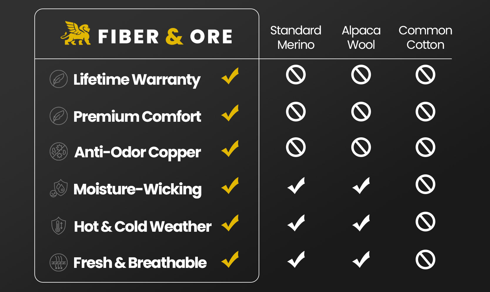We are so confident that Fiber & Ore will be your new favorite socks, that we back every purchased pair with an unlimited lifetime warranty.